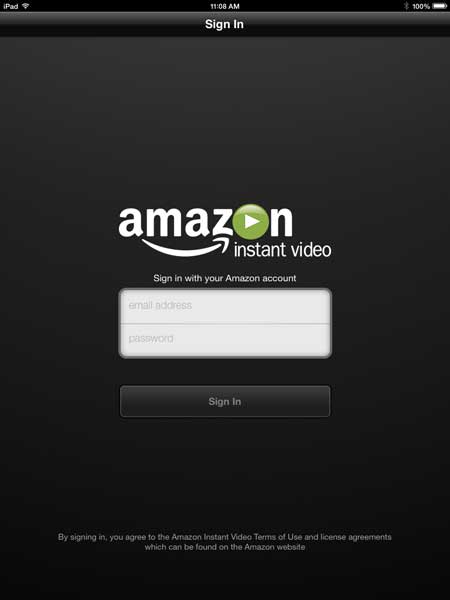 App StoreからAmazon Instantというアプリをダウンロードします。その後、Amazon Primeアカウントのメールアドレスとパスワードを知る必要があります。