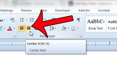 私たちのガイドは、これらの手順の写真を含め、Word 2010のテキストを中心にする方法に関する追加情報を以下に続けます。