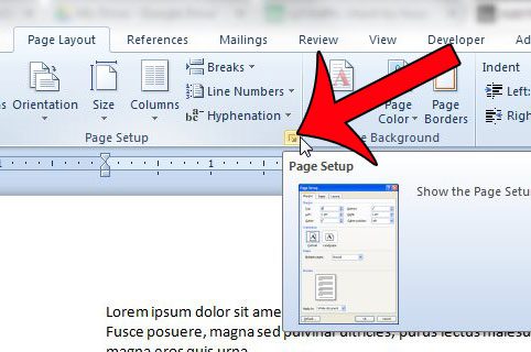 ステップ3:クリックしますページのセットアップ下部の右隅にあるボタンページのセットアップナビゲーションリボンのセクション。