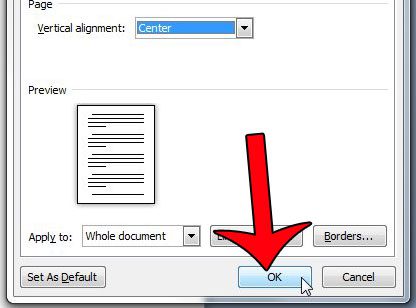 ステップ6:クリックしますわかりました窓の下部にあるボタンは、垂直センタリングを適用します。