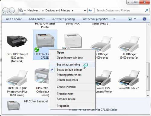 - プリンタを右クリックして、クリックします何が印刷されているかを見てください。