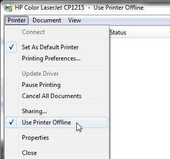 選択しますプリンター、 それからオフラインでプリンターを使用します。