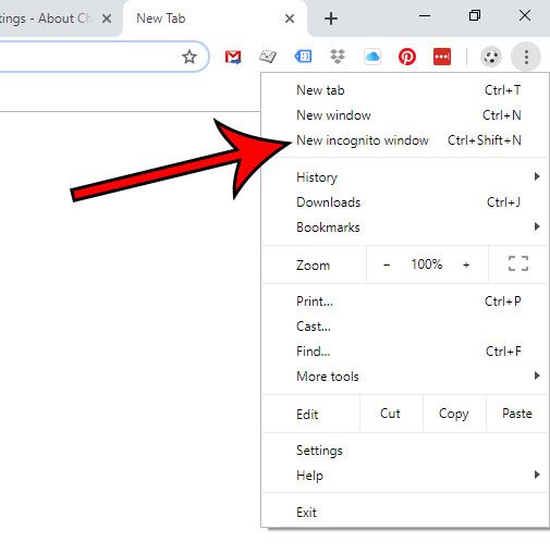 ステップ3:を選択します新しいシークレットウィンドウオプション。
