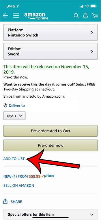 ステップ2:カートの追加ボタンにスクロールして、リストに追加しますその下のオプション。