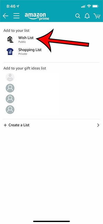 ステップ3:を選択しますあなたのリストオプション。ウィッシュリストに直接開く必要があります。