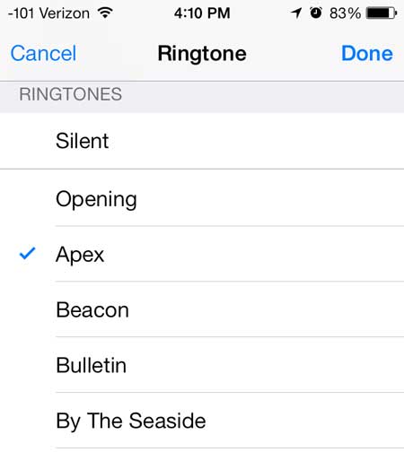 ステップ6:新しい着信音を選択し、タッチします終わりボタン。