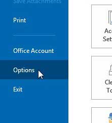 ステップ3:クリックしますオプションウィンドウの左側の列。これは別のものを開くつもりですOutlookオプションウィンドウ。