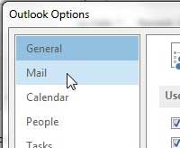 ステップ4:クリックします郵便の左側の列のオプションOutlookオプションウィンドウ。