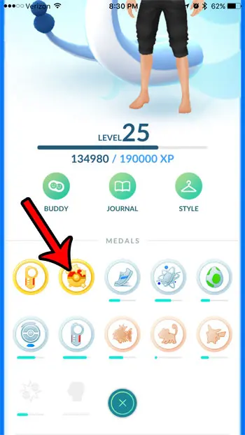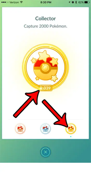 ステップ4:メダルカードの下部にある右の円をタップします。捕獲されたポケモンの総数は、画面の中央にあるメダルサークルの下部に表示されます。