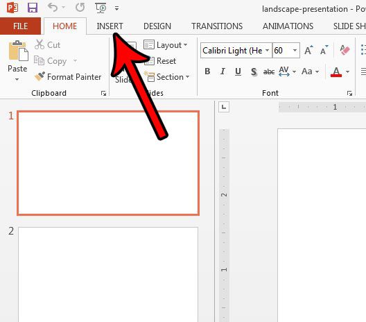 ステップ2:クリックします入れるウィンドウの上部にあるタブ。