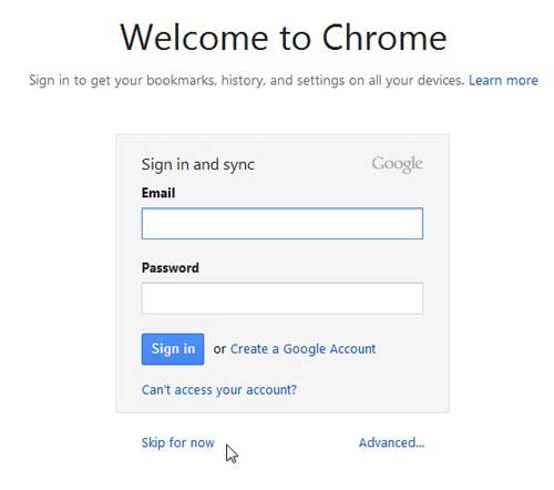 新しいユーザーを作成したいが、Googleアカウントを使用してユーザーを作成したくない場合は、今のところスキップしますウィンドウの下部にあるボタン。