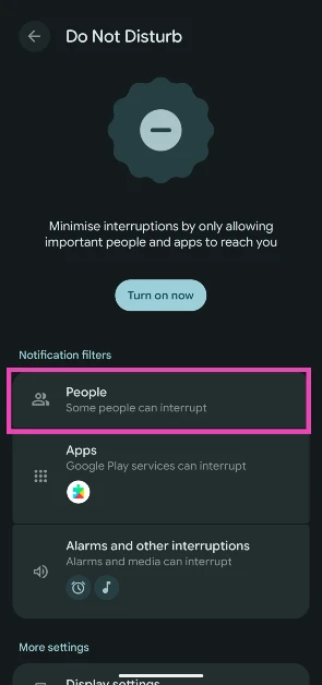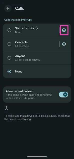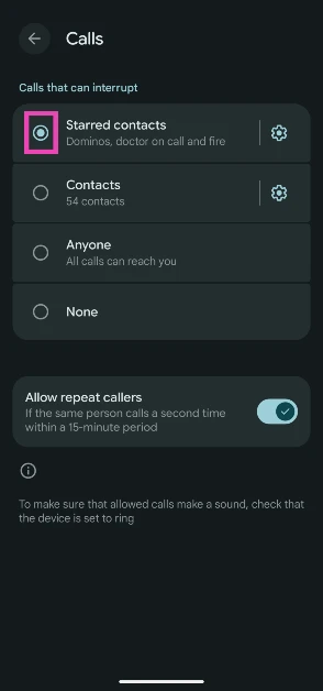 DNDホワイトリストに誰かを追加した場合、彼らの呼び出しはフィルターを通過することが許可されます。さらに、誰かが15分以内に2回電話した場合、彼らの電話もあなたに届きます。