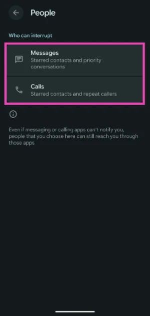 誰でも:誰からでも電話とメッセージがDNDであなたに連絡できます。この設定を選択すると、DNDの全体的なポイントに勝ります。