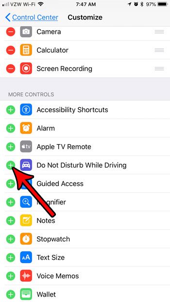 ステップ4:小さな緑をタップします+左側のアイコン運転中は邪魔しないでください。