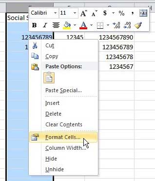 ステップ3:選択したセルの1つを右クリックして、クリックしますフォーマットセル。