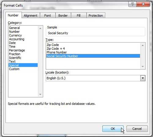 - 選択します特別またはカスタムフォーマット。