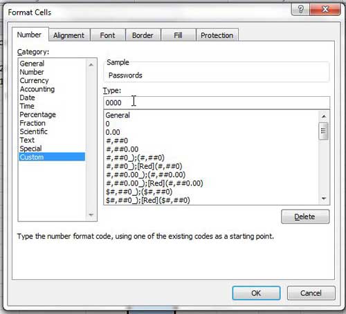 上記の手順は、Microsoft Excelスプレッドシートの一部のセルのフォーマットを変更します。セルのフォーマットを選択するときにカスタムオプションを使用する必要がある場合があり、データに含まれる数字の数に対応するゼロを手動で追加する必要があることに注意してください。