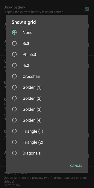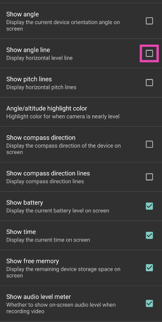 Androidスマートフォンのネイティブカメラアプリは、レベルツールを校正するオプションを提供しません。ただし、オープンカメラアプリで校正できます。アプリを起動してください設定>その他のカメラ制御し、「レベル角度」をタップします。