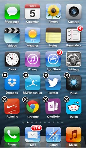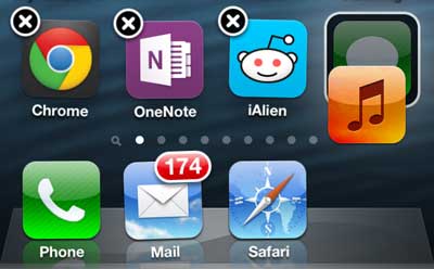Xは、画面上の他のアプリのいくつかの左上の角に表示されることに注意してください。メッセージなどの一部のアプリには削除できないため、Xを押すことでアプリを削除できます。