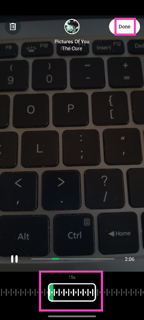 ステップ9:を使用しますスライダー画面の下部で、ステータスに投稿したい曲の部分を選択します。