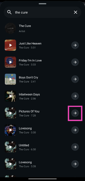 ステップ8:ヒットします矢印アイコンそれを選択するための曲の隣。