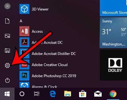 ステップ2:スタートメニューの左下にあるギアアイコンを選択します。