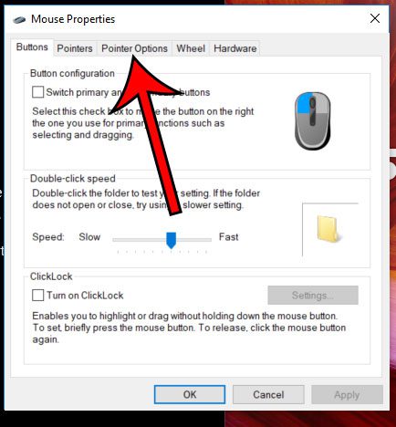 ステップ6:を選択しますポインターオプションウィンドウの上部にあるタブ。
