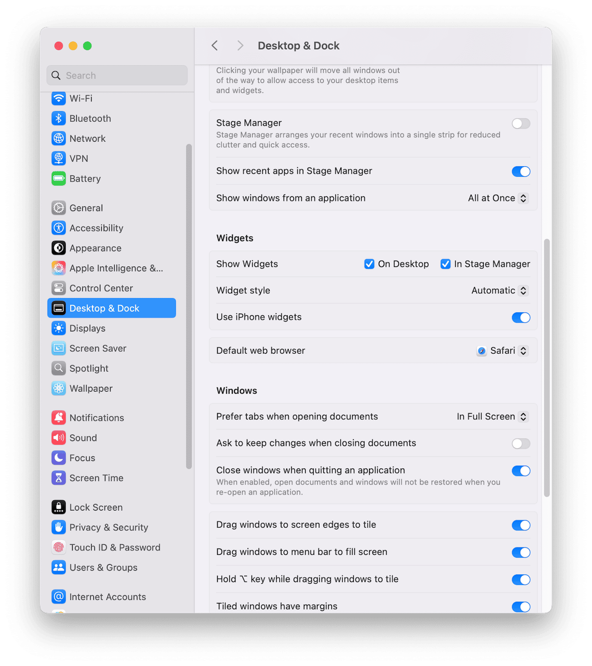 - Appleメニューをクリックして、[システム設定]> [デスクトップ]とドックを選択します。