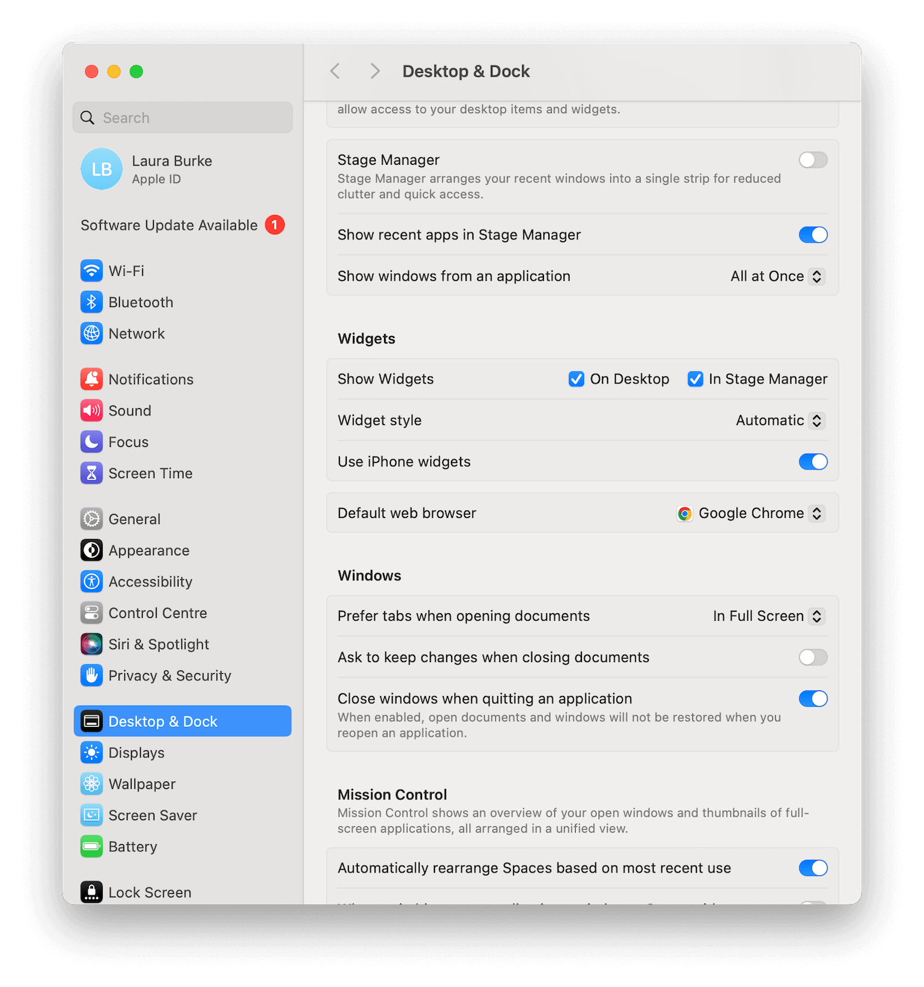 - メインAppleメニューから、システム設定>デスクトップ&ドックに移動します。