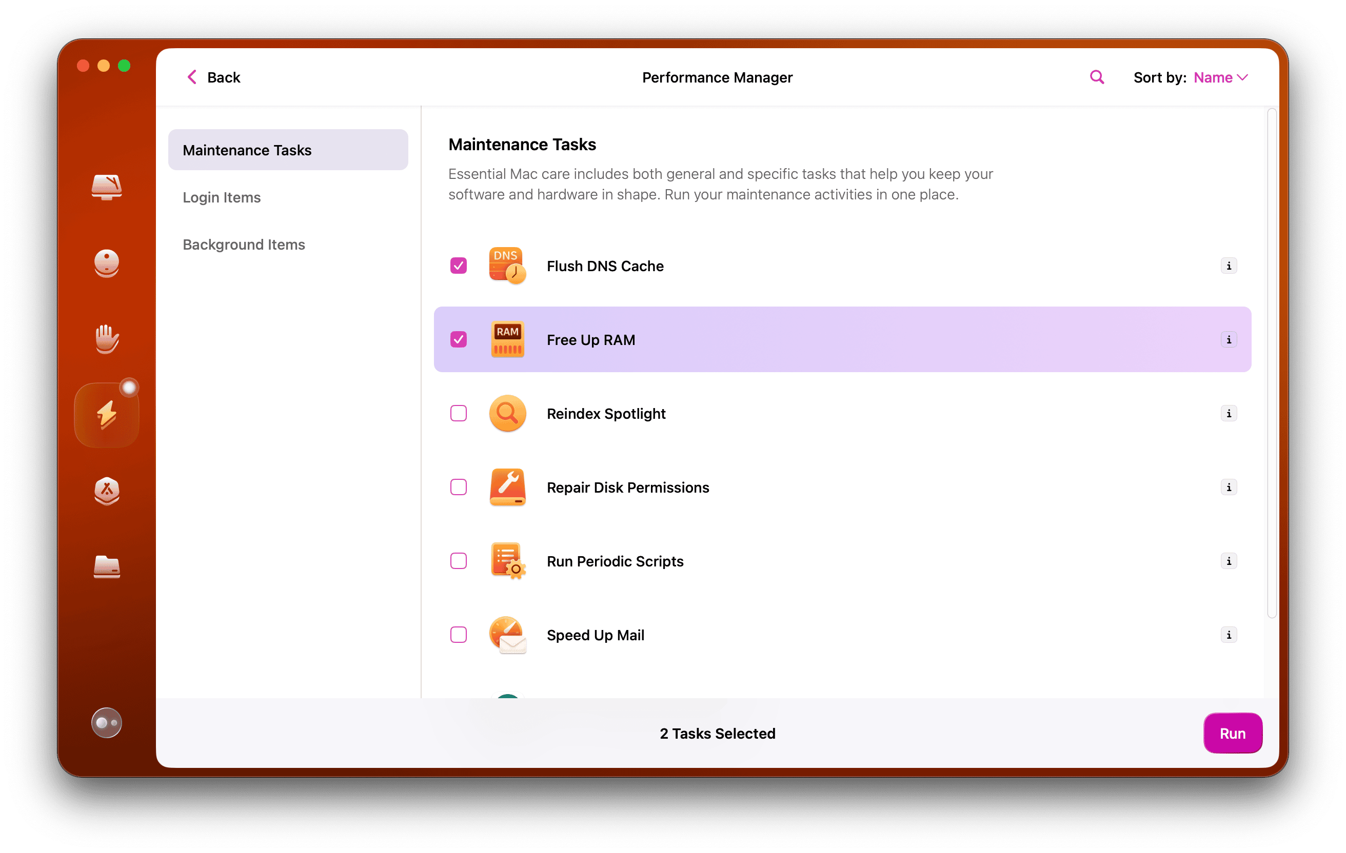 - アプリを開き、[メンテナンス]> [すべてのタスクを表示]をクリックします。