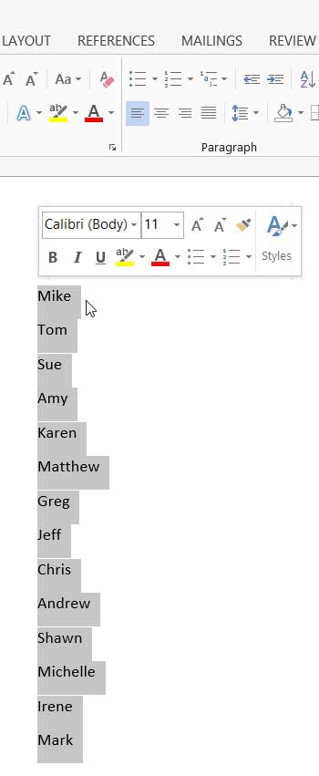 以下のチュートリアルでは、Word 2013ドキュメントで既存の情報リストを取得し、リストの各行の単語の最初の文字に基づいてソートされたリストに変える方法を示します。