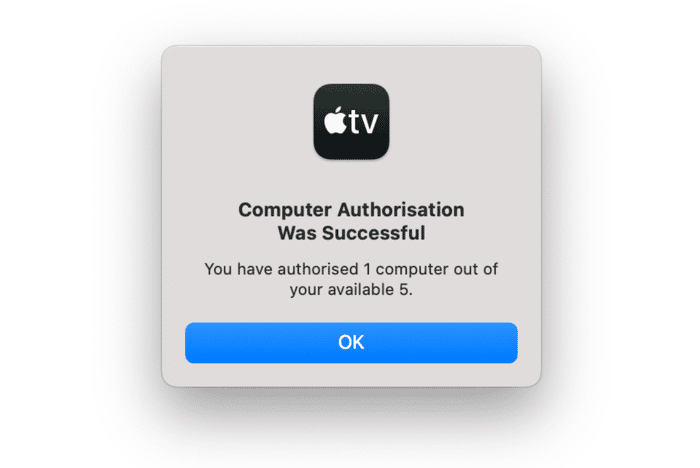 Apple TVや音楽で認可するコンピューターが同じであることは注目に値します。たとえば、テレビや映画のために5つ、音楽には別の5つを許可することはできません。また、Apple TVのコンピューターを承認すると、購入のためにAppleアカウントに自動的に関連付けられます。購入のためにAppleアカウントに関連付けられているiPhoneとiPadは、5つのコンピューター制限にカウントされません。