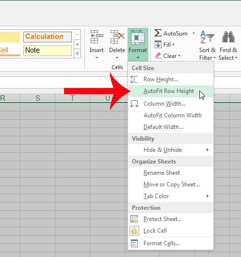 ステップ4:クリックします形式のボタンセルナビゲーションリボンのセクション、次にクリックしますオートフィットの列の高さオプション。