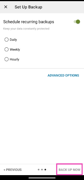 ステップ9:を選択しますバックアップ周波数。インスタントバックアップを作成するには、タップします今すぐバックアップします。