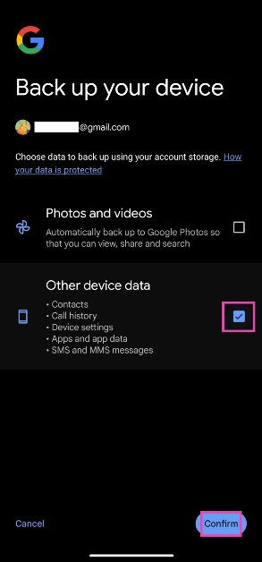 行きます設定> Google>バックアップを管理します、「その他のデバイスデータ」をタップし、「確認」を押します。