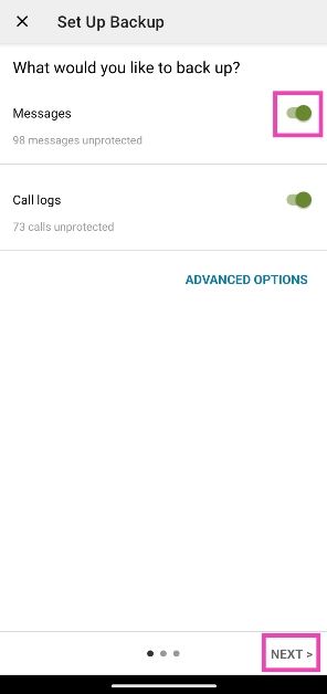 ステップ5:トグルスイッチをオンにしますメッセージ。また、バックアップすることもできますログを呼び出します。