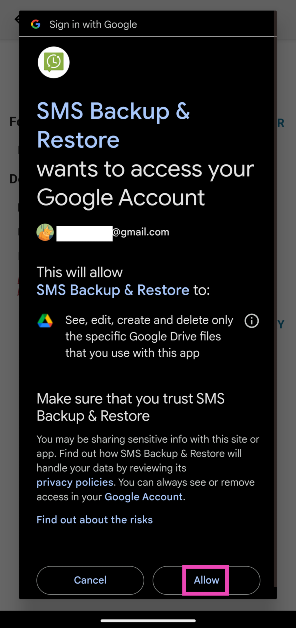 ステップ7:クラウドサービスにログインします許可するアクセスするアプリアカウント。