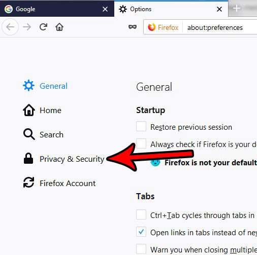 ステップ4:クリックしますプライバシーとセキュリティウィンドウの左側にあるタブ。
