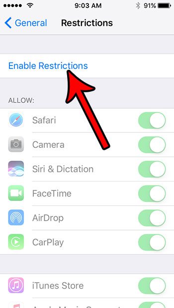 ステップ4:タッチします制限を有効にします画面の上部に。