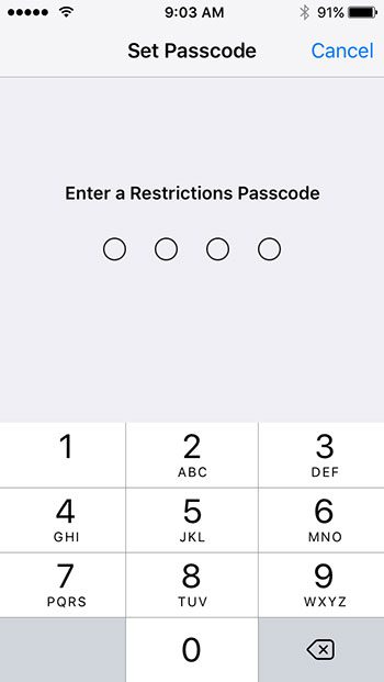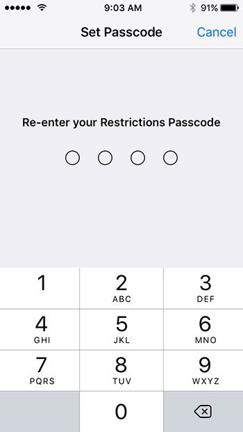 ステップ5:制限メニューを再入力するために後で必要になるパスコードを入力します。このパスコードを覚えておくことは非常に重要であることに注意してください。このメニューがなくても、このメニューに戻ることができないためです。