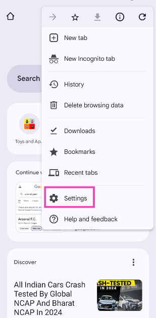 ステップ1: 打ち上げAndroidスマートフォンのGoogle Chrome Webブラウザー。