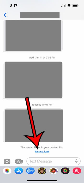 ステップ3:タップしますジャンクを報告します彼らがあなたに送ったメッセージの下のボタン。