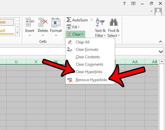 ステップ4:クリックしますクリアのボタン編集リボンの右端にあるセクション、次に、クリアハイパーリンクオプションまたはハイパーリンクを削除しますオプション。