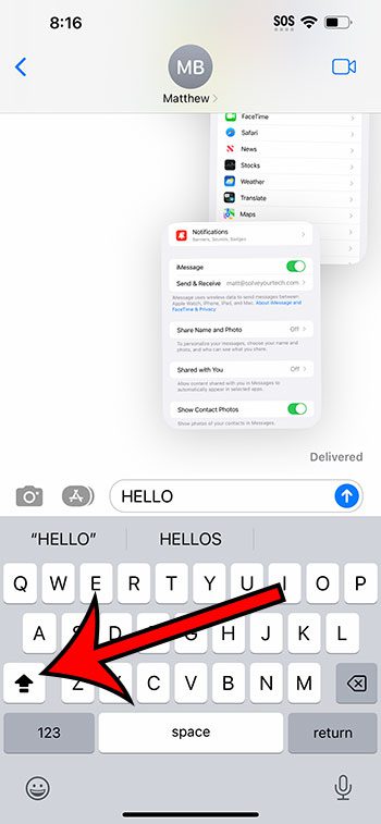 私たちのガイドは、これらの手順の写真を含むiPhone Caps Lock機能の使用に関する追加情報を以下に続けます。