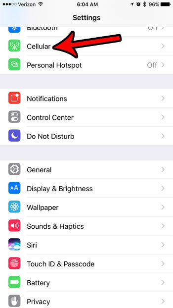 ステップ3:タッチしますセルラーデータオプションボタン。