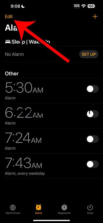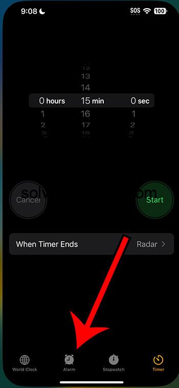 ステップ2:を選択しますアラーム画面の下部にあるタブ。