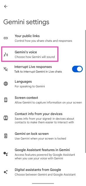 Gemini Liveとアシスタントは、異なるトーンと音声の屈曲を備えた合計10個の声を提供します。