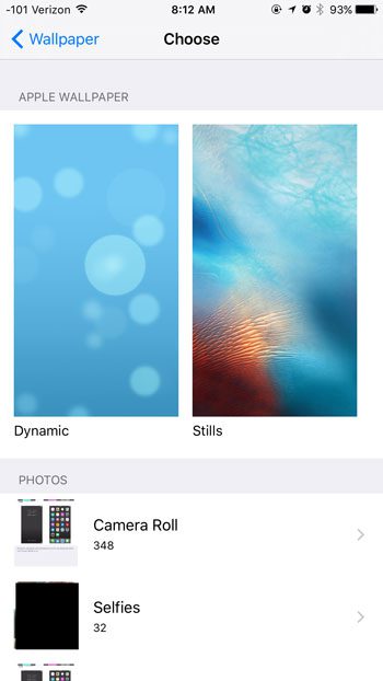ステップ4:タップします動的または静止画Appleのデフォルトの壁紙のいずれかを使用する画像、または使用したい写真アプリの写真を含むフォトアルバムを選択します。