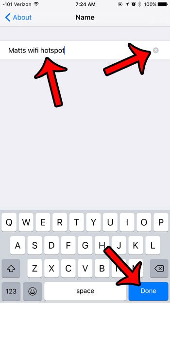 ステップ5:小型をタップしますx現在の名前の右側のボタン、新しい名前を入力してから、青をタップします終わりキーボードのボタン。