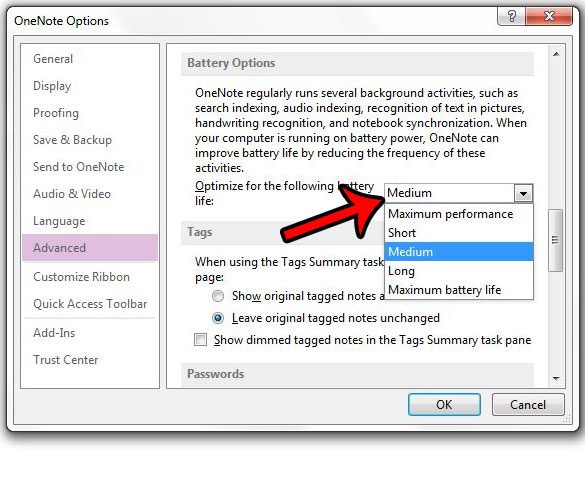 この記事の手順では、バッテリー寿命に影響を与えるためにOneNoteの背景タスクを調整する方法を示します。 OneNoteの全体的なパフォーマンスを改善することを選択できます。これにより、バッテリー寿命が削減されるか、これらのバックグラウンドタスクを最小限に抑えてバッテリー寿命を延ばすことができます。この設定を変更した場合に影響を受ける可能性のあるOneNote 2013の要素は次のとおりです。